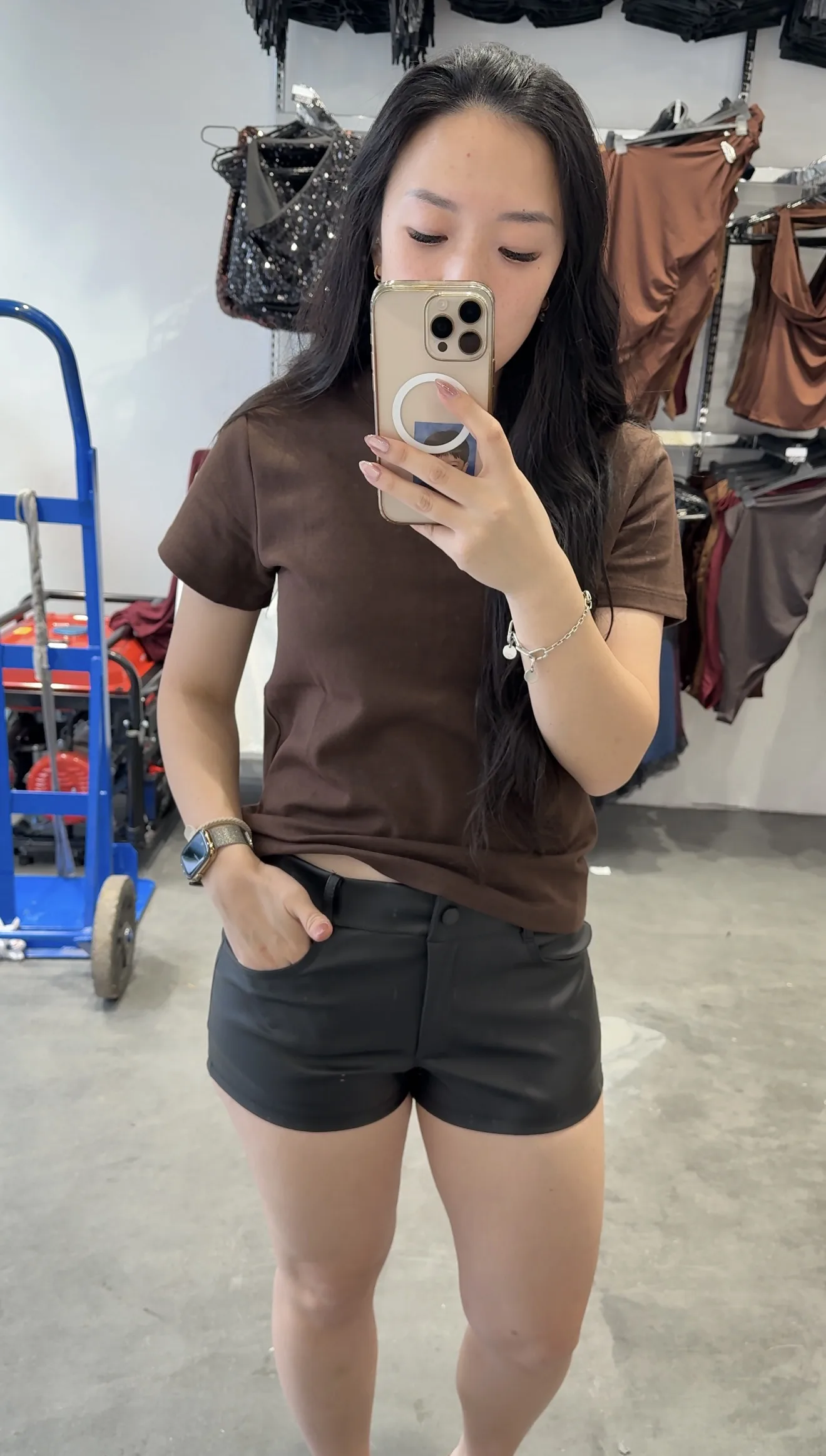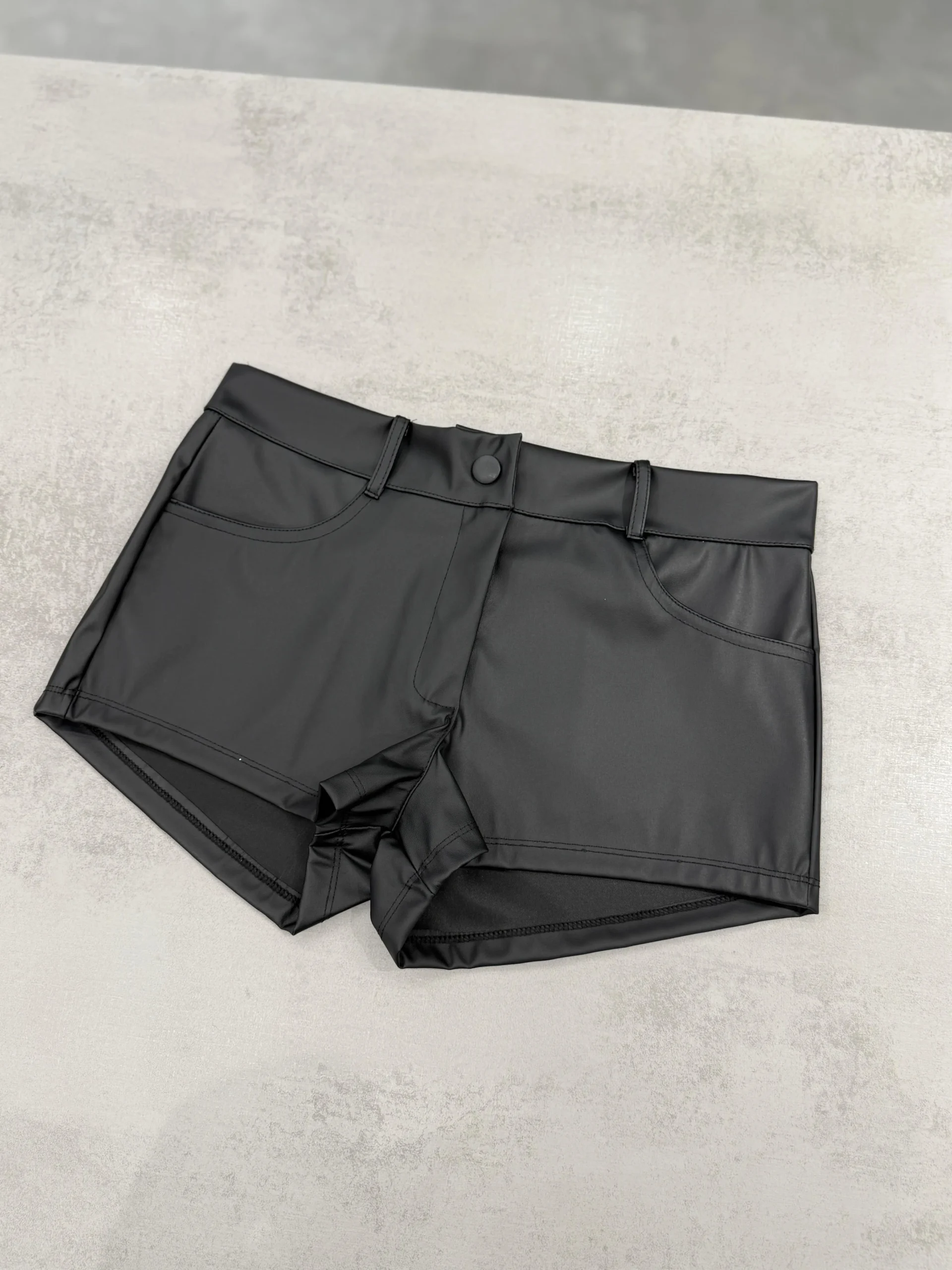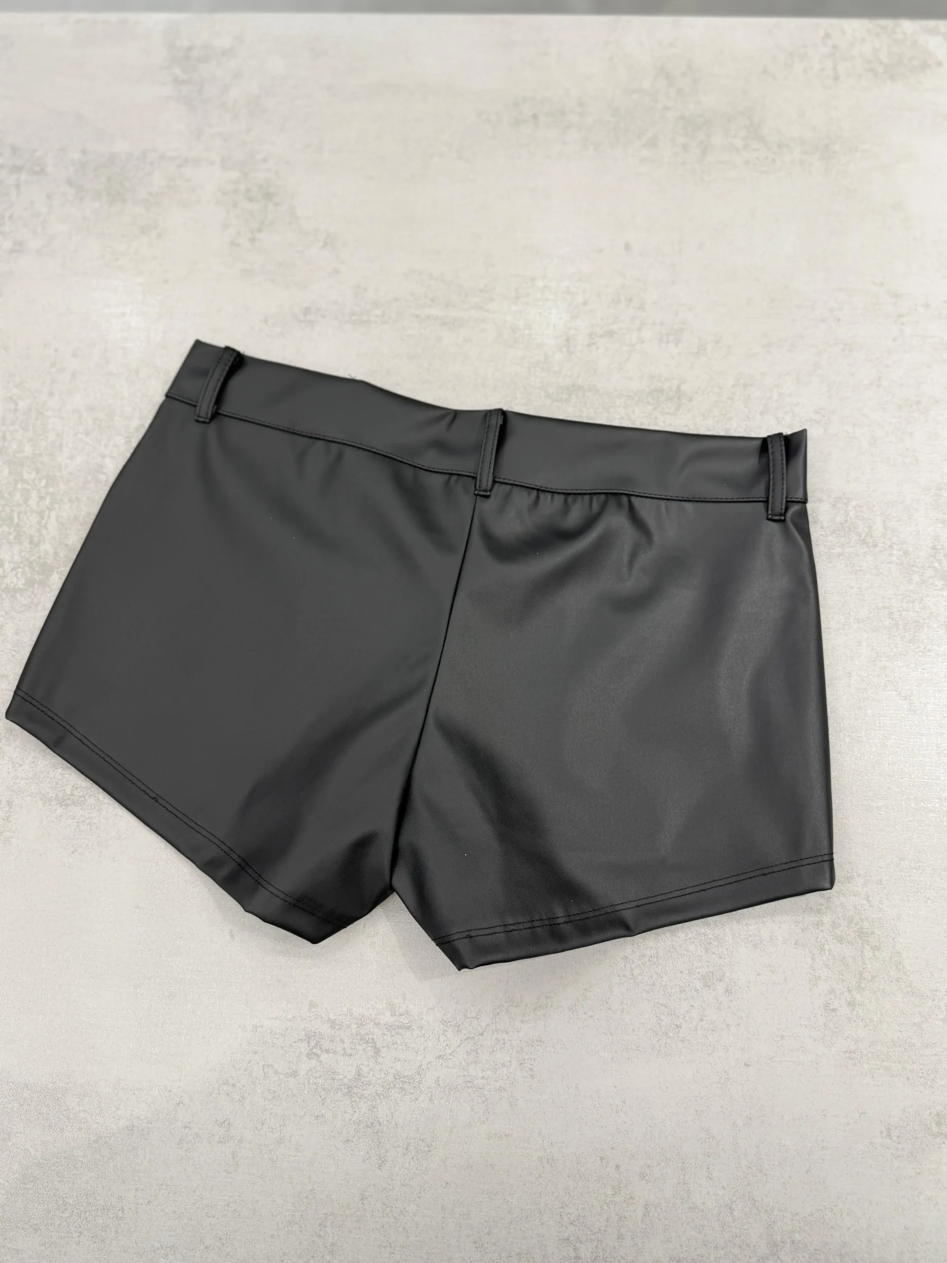 SHORT CUERINA TIRO BAJO BROCHE NEGRO
