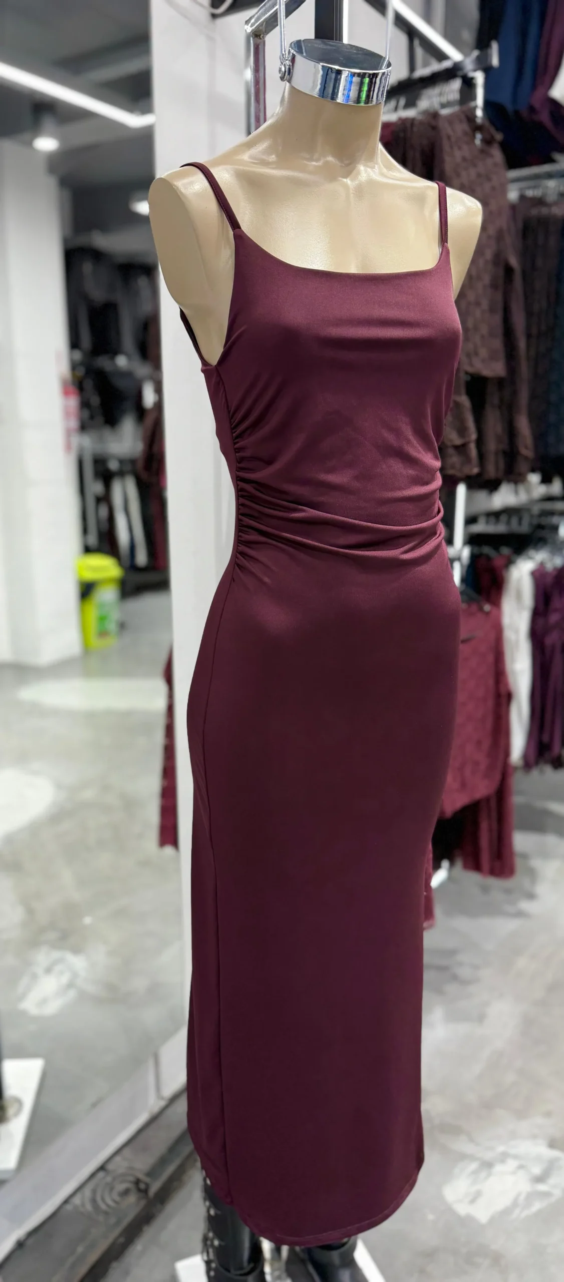 VESTIDO MICROFIBRA LARGO FRUNCE COSTADOS